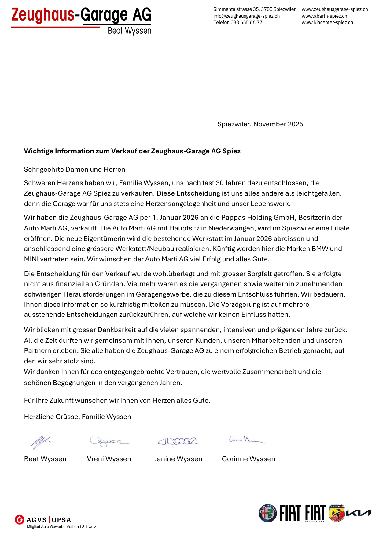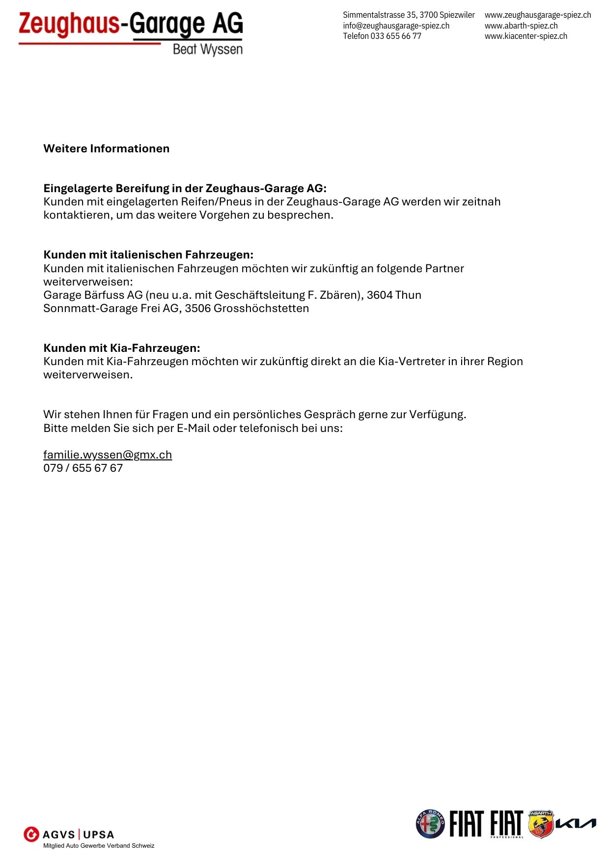 Tel.: 033/ 655 66 77  /  Email: info@zeughausgarage-spiez.ch