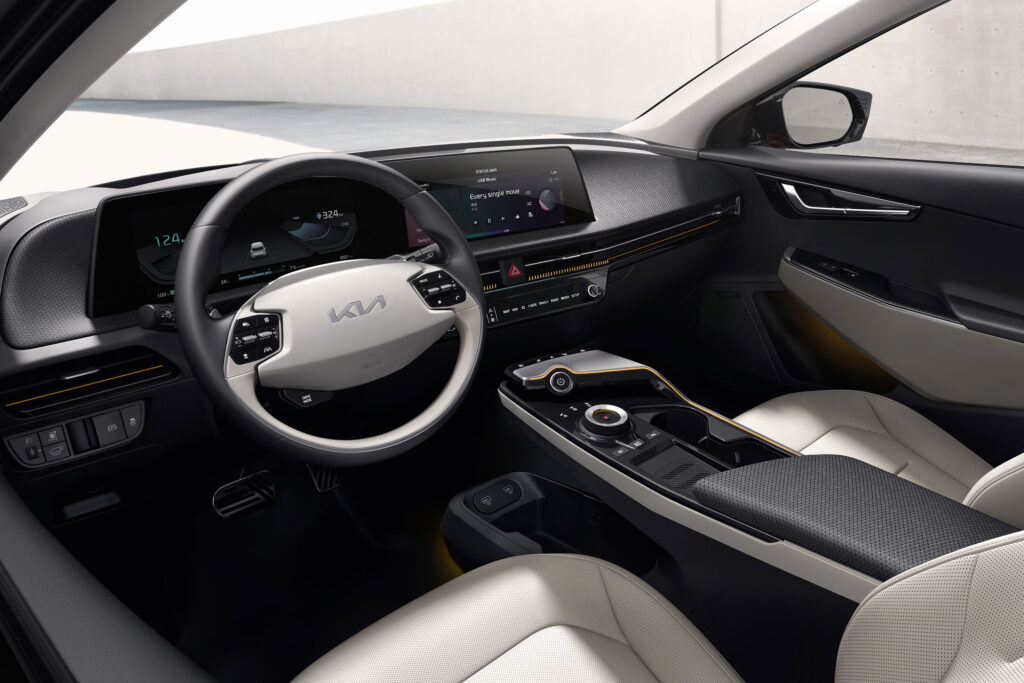 Das neue Kia-Modell vereint leistungsstarke Antriebe, eine hohe Reichweite, ein innovatives 800-V-Schnellladesystem und ein unverwechselbares Design. Der Innenraum des neuen EV6 ist sehr geräumig und mit High-Tech-Elementen wie beispielsweise dem Head-Up-Display mit Augmented Reality Funktionalität ausgestattet.
